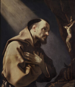 In this painting the artist wanted to depict a young, newly converted Francis in the act of worshipping Christ. A divine light falls diagonally across him from behind a sort of initiation of his apostolic mission and the greatness to which he was destined.